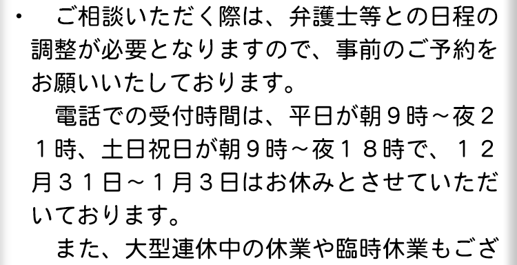 夜間・土日祝の相談も対応します