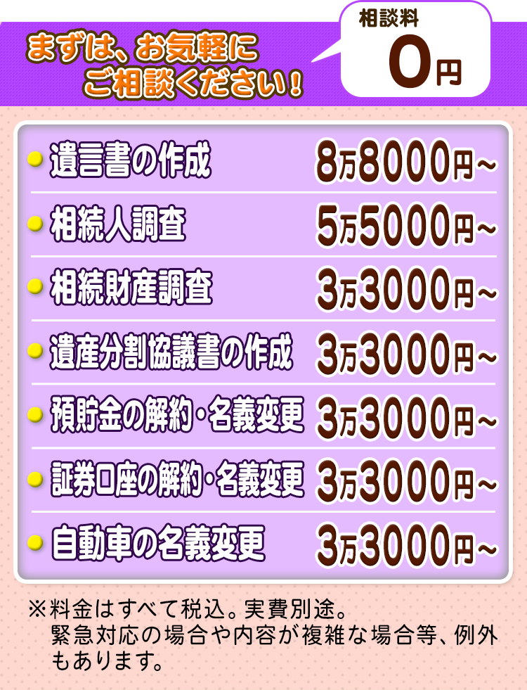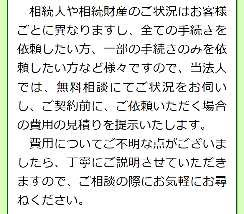 相続手続きのご相談は原則無料で承りますので、四日市の方もお気軽にお問い合わせください。