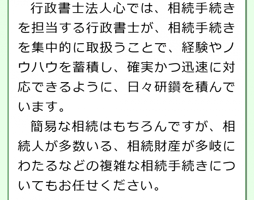 「亡くなった方の預金を引き出したいが、何をすれば分からない」「名義変更の手続きのためにはどの書類が必要になるのか分からない」といったお悩みをお持ちの方は、行政書士法人心にご相談ください。