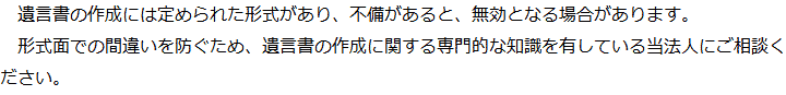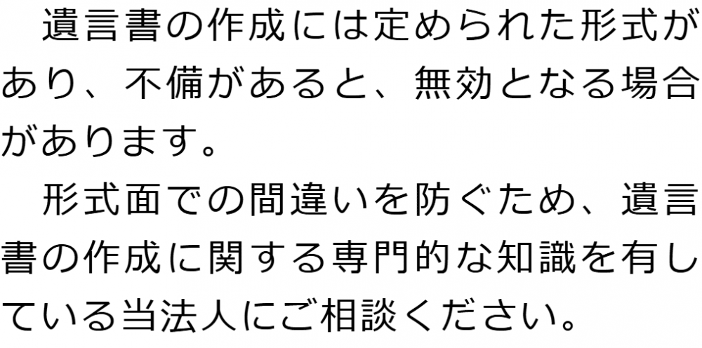 トップ業務内容遺言 階層構造▼ 業務内容(目次) 遺言 業務内容(目次)業務内容トップ行政書士法人心の業務内容遺言遺産整理相続人調査相続財産調査遺産分割協議書の作成預金・貯金の解約・名義変更証券口座の解約・名義変更自動車の名義変更心グループのその他の業務内容家族信託・民事信託節税対策事業承継遺言の検認相続放棄限定承認遺産分割遺留分侵害額請求相続登記相続税申告相続税調査 受付時間 平日 9時~21時、土日祝 9時~18時 夜間・土日祝の相談も対応します (要予約) 所在地 〒510-0075 三重県四日市市安島1-2-29MIZUTAMIビル3F 0120-2403-39 お問合せ・アクセス・地図