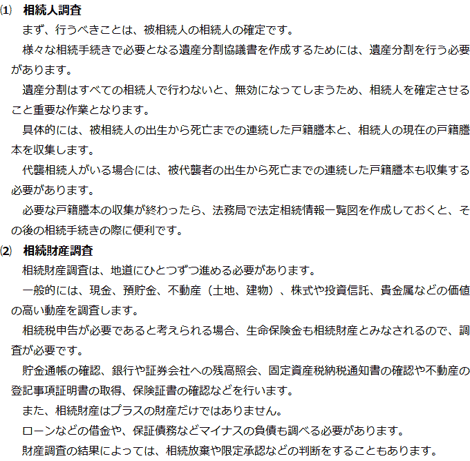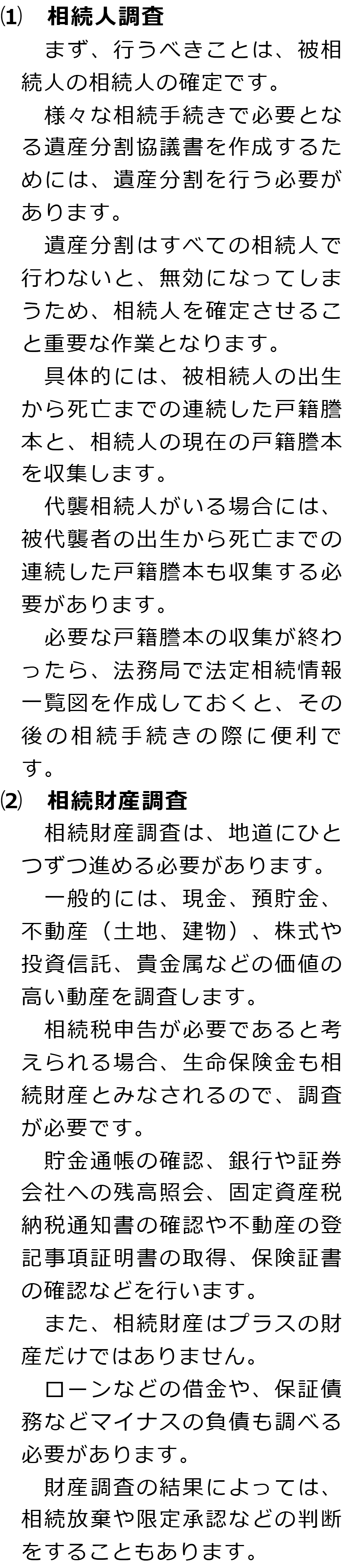 相続手続きの必要事項に関するQ&AQ相続手続きでは何をする必要がありますか?Q相続人調査と相続財産調査では何をする必要がありますか?Q遺産分割では何が必要ですか?Q相続登記はどのような場合に必要ですか?Q相続税申告はどのような場合に必要ですか? Q相続手続きでは何をする必要がありますか?AQ相続人調査と相続財産調査では何をする必要がありますか?AQ遺産分割では何が必要ですか?AQ相続登記はどのような場合に必要ですか?AQ相続税申告はどのような場合に必要ですか?A Q&A(目次)Q&Aトップ相続手続きの必要事項に関するQ&A 受付時間 平日 9時~21時、土日祝 9時~18時 夜間・土日祝の相談も対応します (要予約) 所在地 〒510-0075 三重県四日市市安島1-2-29MIZUTAMIビル3F 0120-2403-39 お問合せ・アクセス・地図
