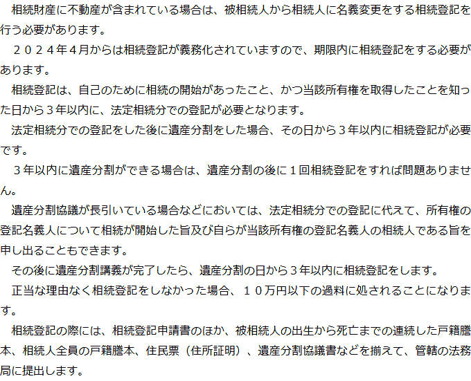 Q&A(目次)Q&Aトップ相続手続きの必要事項に関するQ&A 受付時間 平日 9時~21時、土日祝 9時~18時 夜間・土日祝の相談も対応します (要予約) 所在地 〒510-0075 三重県四日市市安島1-2-29MIZUTAMIビル3F 0120-2403-39 お問合せ・アクセス・地図